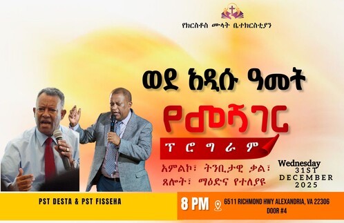 የክርስቶስ ሙላት ቤተክርስቲያን በቨርጂኒያ ስቴት አሌክሳንደሪያ ከተማ የምትገኝ በDMV ከዚያም አልፎ በመላው አገሪቱ የሚገኙትን ኢትዮጵያውያንን በወንጌል ለመድረስ በእግዚአብሄር ራዕይ የተመሰረተች ቤተክርስቲያን ናት፡፡ ይህች ቤተክርስቲያን ጌታችን ኢየሱስ ክርስቶስ ለደቀመዛሙርቱ የሰጠውን ሐዋሪያዊ ዓላማና ተልዕኮ ለማስፈጸም በእግዚአብሄር መንፈስ በመታገዝ የወንጌሉን መልዕክት ለፍጥረት በማዳረስ በኩል እስካሁን ሊናቅ የማይችል ሰፊ አስተዋጽኦ እያበረከተች ያለች ለወደቁት መነሳትን ለጠፉት መገኘትን ተስፋ ለሌላቸው ተስፋን ለታመሙት ፈውስን በጨለማ ላሉት የእግዚአብርን ብርሃን የምታውጅ ቤተክርስቲየን ናት፡፡ ኑ ከኛ ጋር ይግጠሙና አብረን እንሂድ፡፡